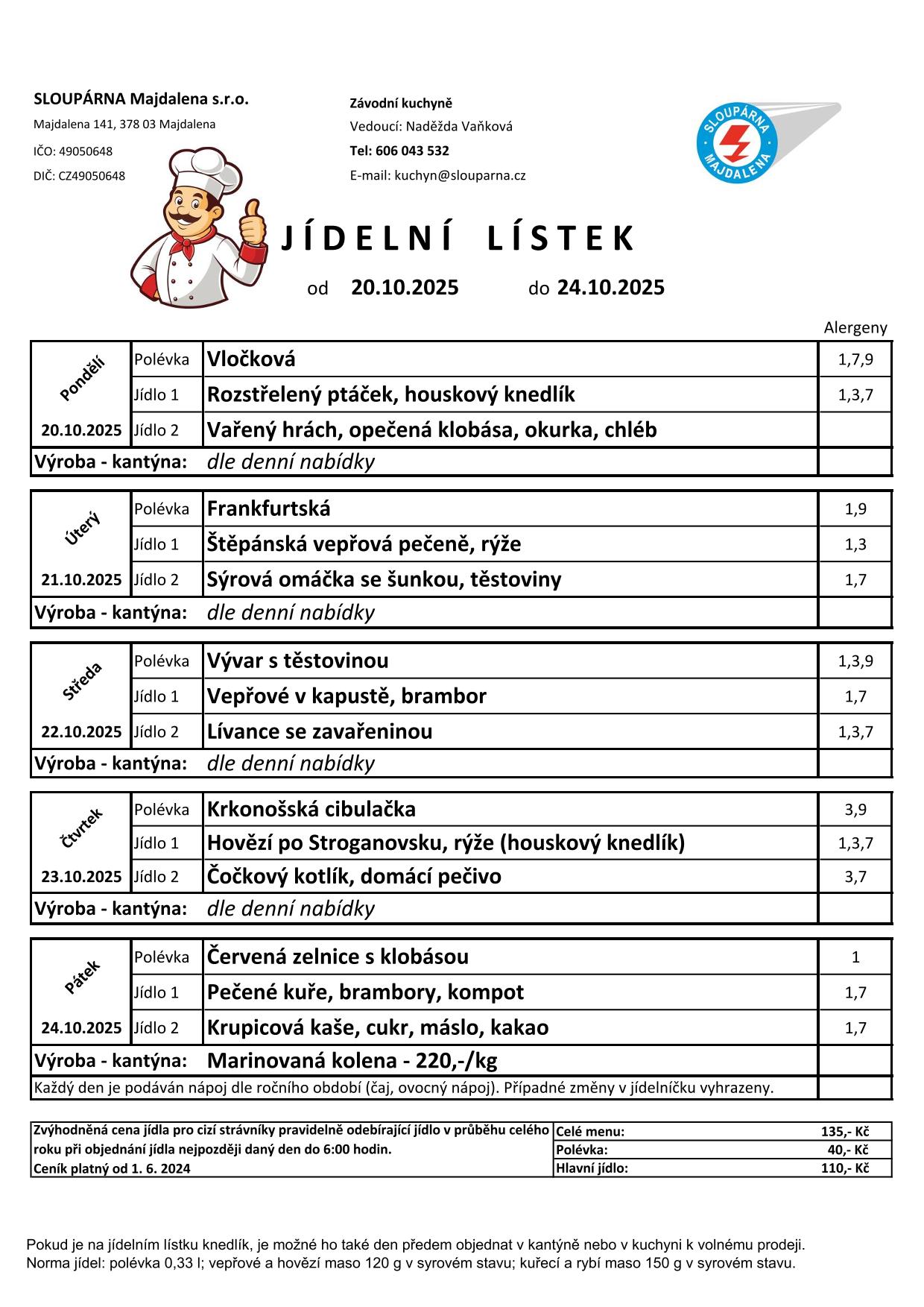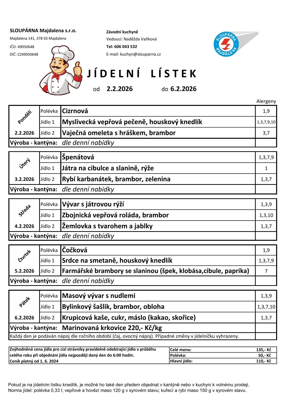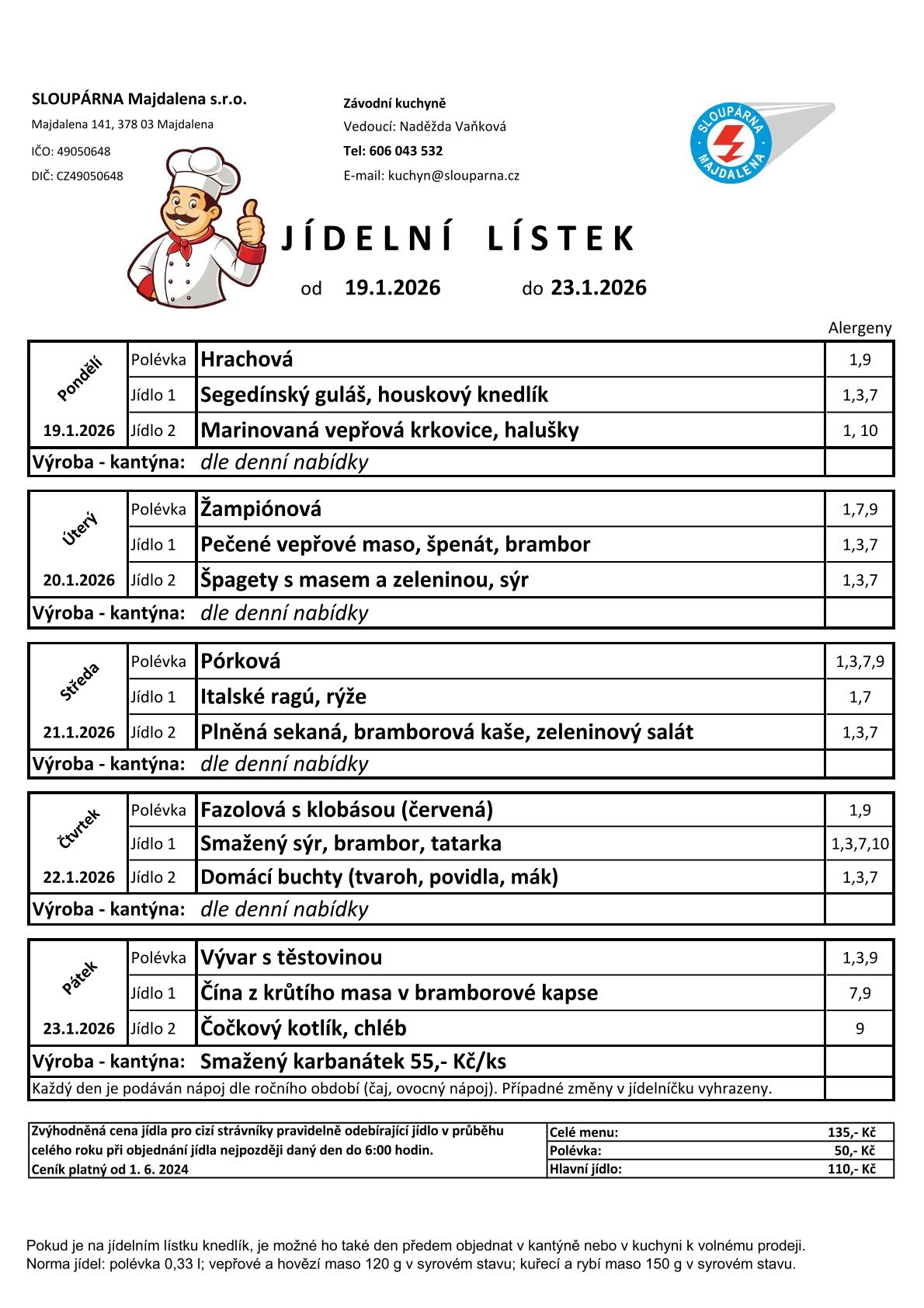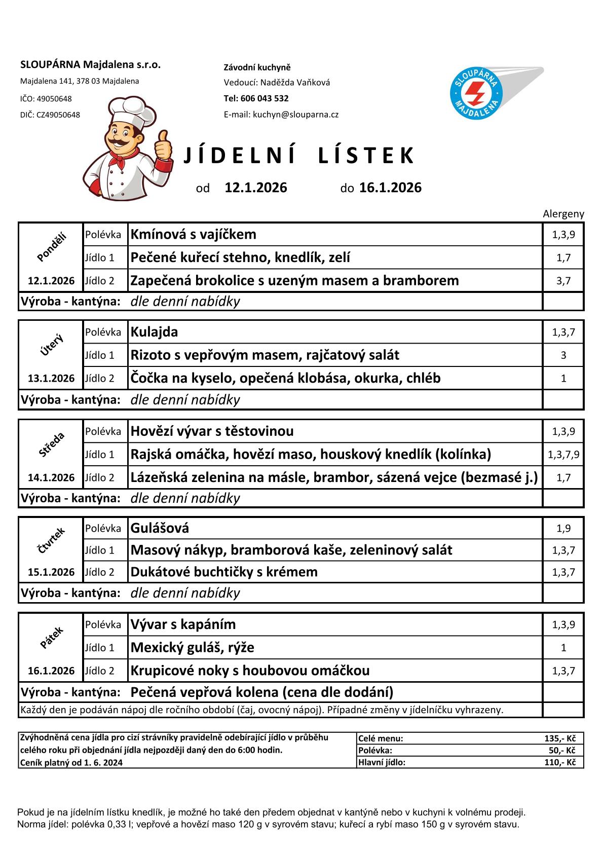 Kontakt pro objednání obědů - 606 043 532 - kuchyn@slouparna.cz